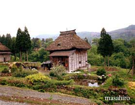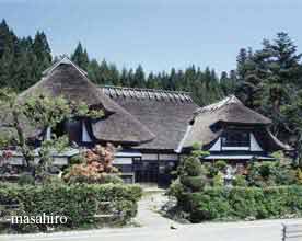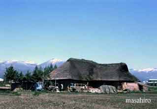 IWATE-KEN For 1,000 years this area has been famous for its excellent horses. It is known as the "horse-growing Iwate-ken". Many houses were designed with a wing at a 90-degree angle to allow the horses to live together with the family. This very particular house was called the "NANBU-Angled-House"(Nanbu being the district of the prefecture where these houses were prevalent). When these MINKA are seen, one sense how much love and regard the home-owners gave to their horses and how they treated these animals as part of the family. | ||||||||||
