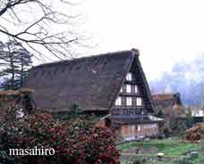 GIFU-KEN This deep mountain-side area has been designated a "world cultural-heritage site". Silkworm-rearing was done here too, but with the restraints of limited land, was by custom done in large houses as extended families, since there were laws prohibiting additional buildings. A large house may have accommodated 2 to 3 generations together under the same roof. Although wood was the only building material, houses in this area were even 4 to 5 stories high. These tall MINKA were called "GASHO-ZUKURI"(literally meaning "the style of a steep-rafter-roof mimicking the joining-of-hand-in-prayer"). Many think that this reverent acknowledgement has resulted in the most beautiful MINKA style in Japan. | ||||||